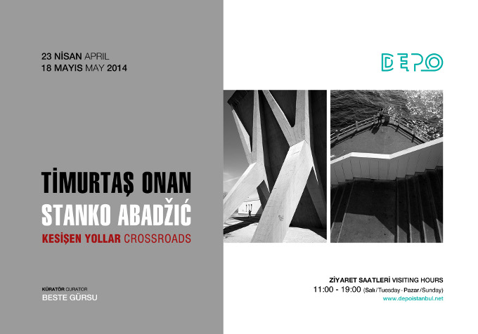 DevamıTütün Deposu / İstanbul.. 23 Nisan - 18 Mayıs 2014 Kesişen Yollar Timurtaş Onan / Stanko Abadzic 23 Nisan / 18 Mayıs 2014 Küratör Beste Gürsu DEPO ISTANBUL / Tütün Deposu Açılış 22 Nisan 2014 Saat: 18.30
